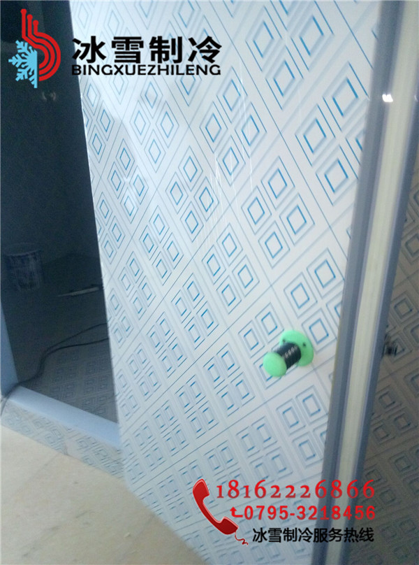 宜春國際商貿城醫藥冷庫配汽油發電機設計溫度:-0度庫體尺寸:3.3*3*2.2庫板規格:雙面彩鋼聚胺脂冷庫板100mm 庫門規格:雙面彩鋼1800*800半埋門溫控箱:單溫智能化箱電控箱制冷方式:DD22風機主機:谷輪全封閉3匹機組膨脹閥:美國丹佛斯膨脹閥(SPORIAN)Φ15冷庫燈:LED防爆冷庫燈