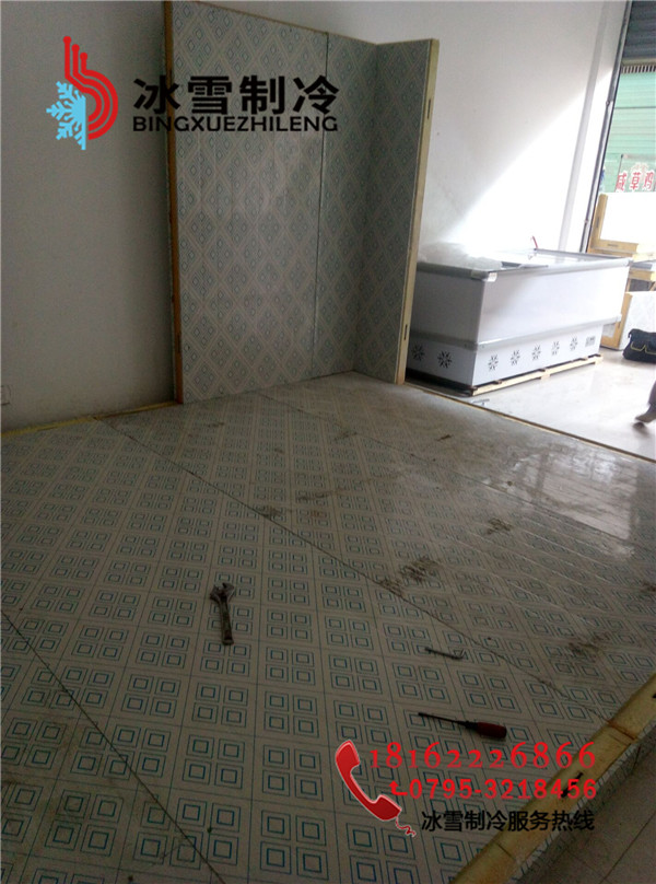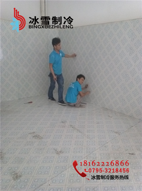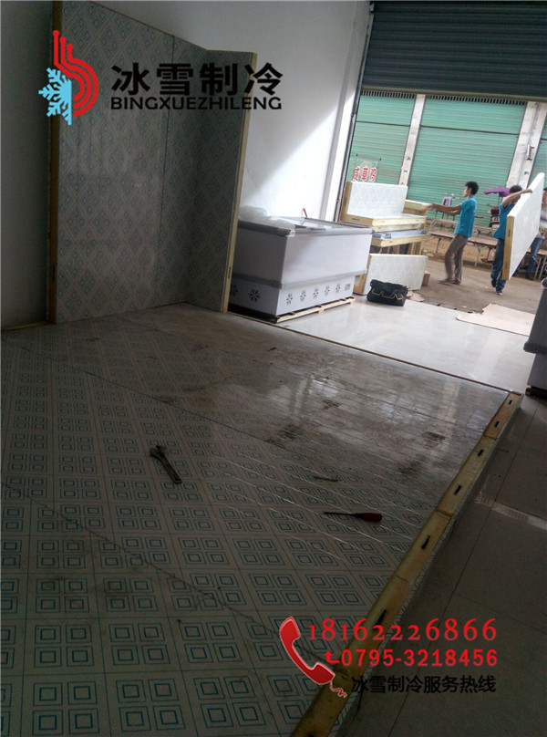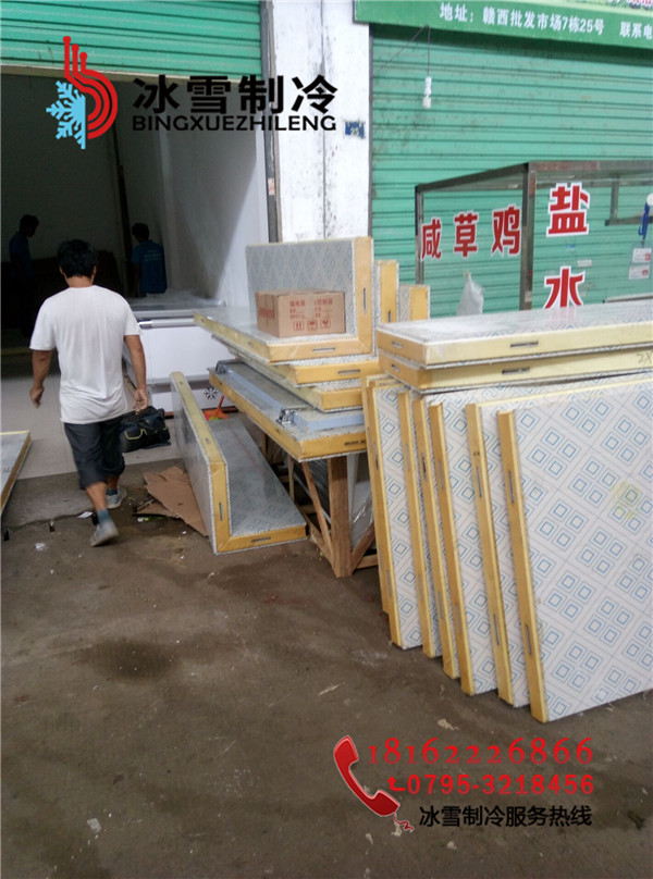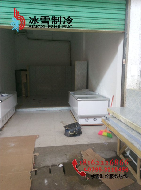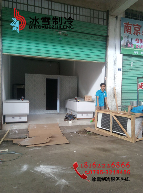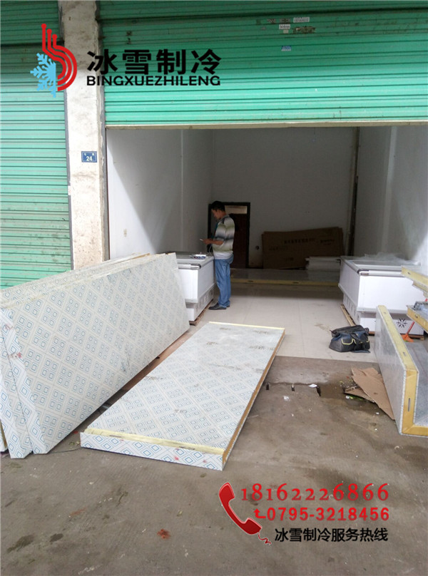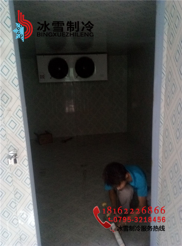 工程地址:宜春贛西農貿批發市場冷藏庫設計溫度:-0度庫體尺寸:4*3*2.4庫板規格:雙面彩鋼聚胺脂冷庫板100mm 庫門規格:雙面彩鋼1800*800半埋門溫控箱:單溫智能化箱電控箱制冷方式:DD22風機主機:谷輪全封閉3匹機組膨脹閥:美國丹佛斯膨脹閥(SPORIAN)Φ15冷庫燈:LED防爆冷庫燈